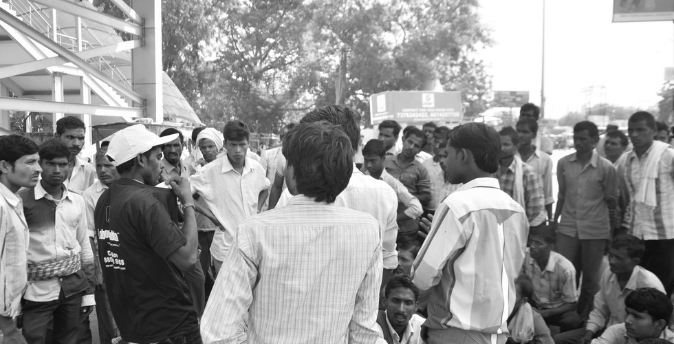 Glimpse of labourers flocking the traditional labour mandi while they await customers. Many a times, these labourers go days without any substantial leads of employment despite being present the labour mandis everyday.